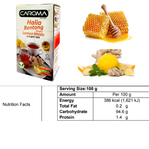 # Ingredients: Honey Powder, Bentong Ginger Powder, Lemon Powder, Brown Sugar and Dextrose.