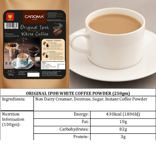# Ingredients: Non-Dairy Creamer, Dextrose Sugar, Instant Coffee Powder