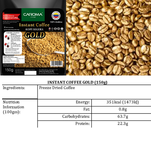 [CAROMA] GOLD Selection Premium /Freeze Dried /Instant Soluble Coffee Powder/150g/Halal /Colombia Bean Arabica/Coffee o/ Black Coffee/ No sugar