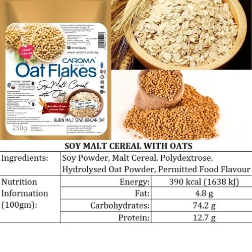 [CAROMA] Australian Origin Instant Soy Malt Cereal with Oat/250g / oat flakes/ soya oat flakes segera/halal /protein/oat breakfast/healthy
