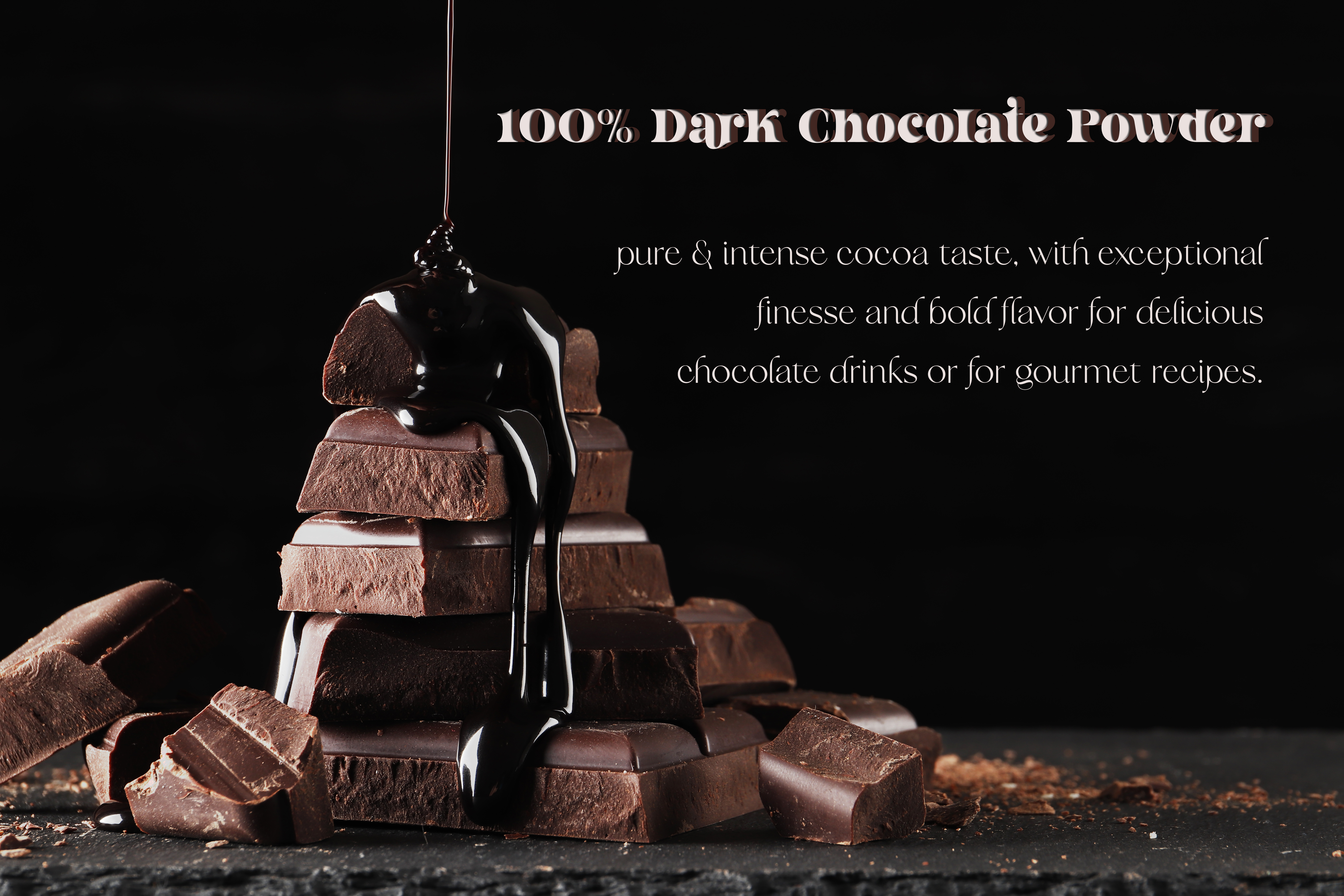 CAROMA DARK CHOCOLATE 100%Caroma Dark Chocolate 100% is pure & intense cocoa taste, with exceptional finesse and bold flavor for delicious chocolate drinks or for gourmet recipes.