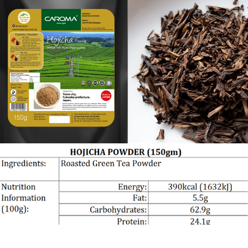 CAROMA Hojicha Roasted Green Tea Powder Imported from Yame City, Fukuoka Prefecture Japan, its fragrant aroma and nutty, toasty flavor, Hojicha Roasted Green Tea (also known as houjicha) is a popular tea with plenty of health benefits.